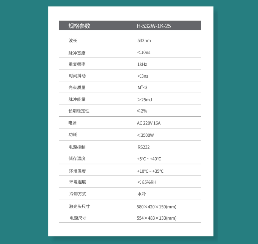 超高重频大能量脉冲激光器 H-532W-1K-25